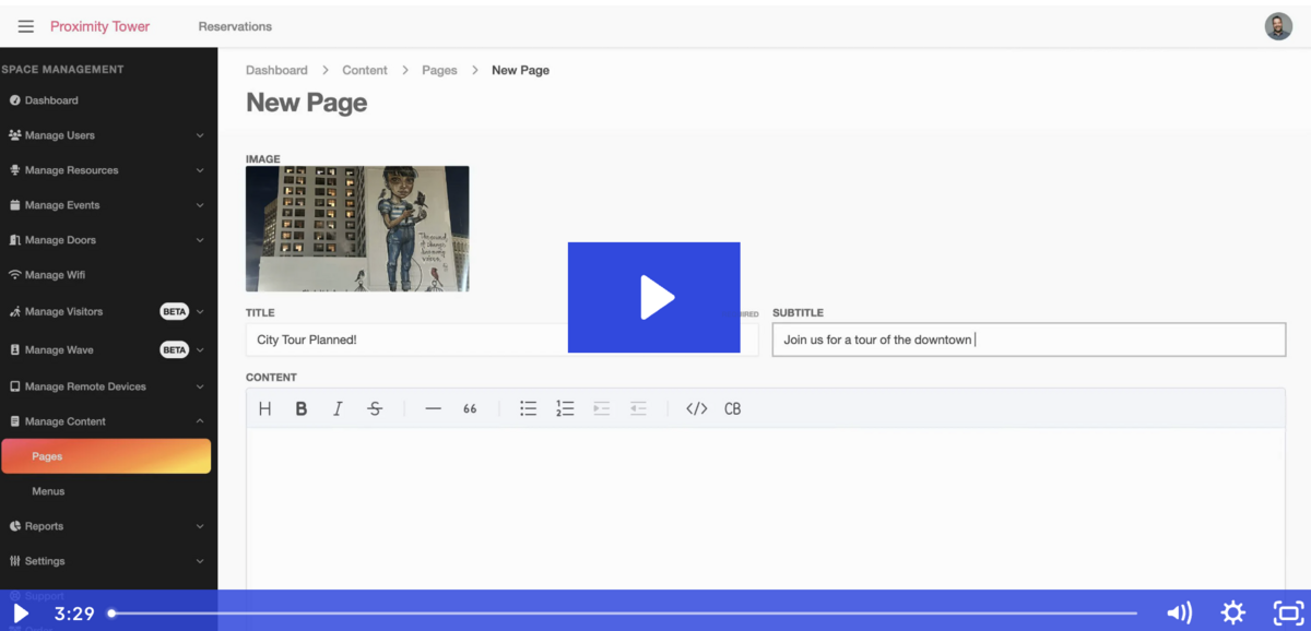 Pages are content items you can display within the Proximity Mobile app. Learn how to integrate them into your app's navigation in the Menus section below.